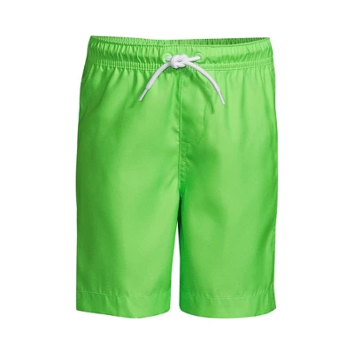 At Lands’ End we’re proud to believe every body is a beach body. And that goes for kids too! Fortunately little boys don’t usually need much to have fun in the sun. Just some sandals a fluffy towel a bucket and shovel…and our great volley swim trunks of course. Made from durable polyester fabric these swim bottoms block harmful UV rays and provide UPF 50 sun protection that doesn’t fade wash away or pollute the ocean. The amazing material is also quick drying (so he won’t get stuck in a soggy suit) and resists damage from chlorine. We’ve also added a faux fly back pocket with drainage grommets and a supportive mesh lining. The elastic waistband has plenty of stretch and the functional drawstring can be tightened or loosened as needed. Take these packable swim trunks along on your next family vacation. He can wear them when he’s splashing in the hotel pool playing in the surf or zipping down a water slide. And since they’re machine washable caring for them couldn’t be easier.