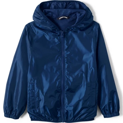 Gray skies and clouds are nothing to fear when this amazing Lands’ End coat is hanging in your closet. The rugged windproof and waterproof shell will protect your child all year long without adding weight whether it’s from the wet weather that arrives in the fall chilly spring showers or even a summer downpour.Since this coat packs into its own rip & grip pocket it’s easy to take with you anywhere. Stuff it into a backpack suitcase or even the glove compartment in your car and you’ll always be prepared and never caught off guard. We’ve also added elasticated cuffs and welt pockets on the front so your little one will have a place to keep their hands warm.When it’s coming down hard outside pair this coat with rain pants and rubber boots to keep them totally dry in a way that a puffer or trench can’t match. Since it’s fully seam-sealed nothing will get through and you won’t have to stress about your child coming home soaked and shivering.
