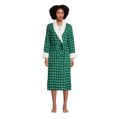 Remember you heard it here first ladies. Pajamas are the most important outfit you can have. Stay comfortable all night long. This Womens Petite Flannel high pile fleece Lined Robe will have you covered.Ever wanted a four star hotel or spa robe to take with you? This calf length flannel robe goes above and beyond. Whether you’re wearing pajama tops and bottoms underneath or cozying right up to the high pile fleece fleece this robe is a delight.Lounge about at home take with you on ski trips and family vacations this is the essential packing item you’ll never forget to bring.Working from home has never been comfier. We make it easy for when you need to wake up and do your morning commute. Brew a pot of coffee have some breakfast and sit down at your desk. Whew. Traffic was wild. Catch up on some comfort as you get started at work.PJs are as essential as any womans outfit except they’re for those of us who reward our favorite time of day: when we rest. Lands’ End Pajamas offer the best casual comfort and quality for years to come.