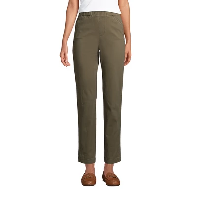 Our Lands’ End Women’s Plus Size Mid Rise Pull On Chino Ankle Pants are the perfect example of stylish comfort. Cute comfortable stretchy and stylish you can wear these pants from morning until night and never suffer an ounce of discomfort. Made from a crisp cotton twill with just a hint of stretch and a covered elastic waistband these pants offer that stretchy mobility you need to fit just right so they feel and look amazing. The breathable nature of cotton also keeps you cool and comfortable when you work or play indoors or outside. But the best part? They present like dress pants thanks to the finished hem onseam pockets back welt pockets and faux zip fly. But they are still comfy enough to lounge in. You can truly consider these work pants weekend wear appropriate. How about that?! Set yourself up for a cute and comfortable day and wear them with dress shirts blazers suit jackets cardigan sweaters or a basic cotton tshirt or button-down shirt for a run to the store. Add some sandals heels or slip-ons and you’ll have a completely stylish outfit in minutes. Women’s Mid Rise Pull On Chino Ankle Pants are available in a variety of solid colors and prints. Regular petite tall and plus size pants available. Lands’ End shifts proportions and makes fabric adjustments for quality plus size pieces. For a more relaxed fit consider ordering one size larger. Ankle length inseam is 26 inches. Plus size pull-on Chino pants start at 16 Plus to 26 plus. Tall sizes available from size 6 Tall to size 18 Tall. Regular sizes begin at size 2 to size 14. Petite sizes available from size 2 to size 18 petite. Sizes are based according to body measurements. Consult the sizing chart for your true size fit.