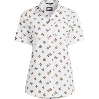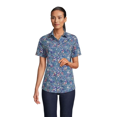 The ease and reliability of our no iron shirt in a unique style with a slight retro nod. Reach for this top on days when you want something a little less traditional (without any added ironing). The slit neck with hidden button placket and rounded hem pair with a great pair of slim pants and your favorite flats for a standout look.