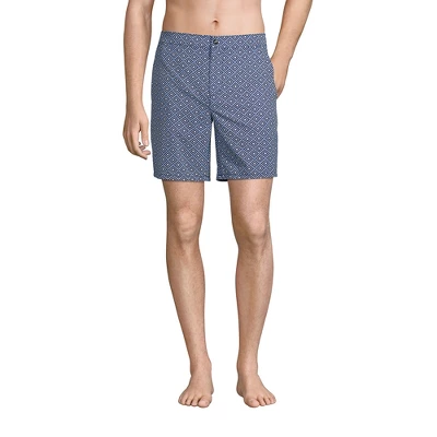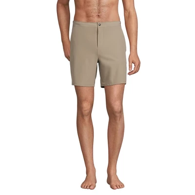 One on hand you have swim trunks. They’re made for getting wet diving in the deep end and relaxing on the beach. Then you have tailored shorts. They look stylish and are easy to dress up or down. Now imagine getting the best of both worlds with these Men’s Lined 7″ Hybrid Swim Shorts from Lands’ End! The water-repellant fabric keeps you drier when splashes happen so you don’t need to worry about the kids doing cannonballs into the pool or the dog drying himself off after running through the sprinklers. There are several pockets for stashing your essentials and the stretchy fabric makes them easy to move in. We’ve also added a knit hydroliner for support along with a functional zipper fly. And of course these swim shorts look great. You can wear them with a swim tee or a rash guard when you head to the lake. And at your friend’s backyard barbecue give them a stylish twist by wearing a polo and a pair of deck shoes. Caring for them is simple as well since they’re machine washable.
