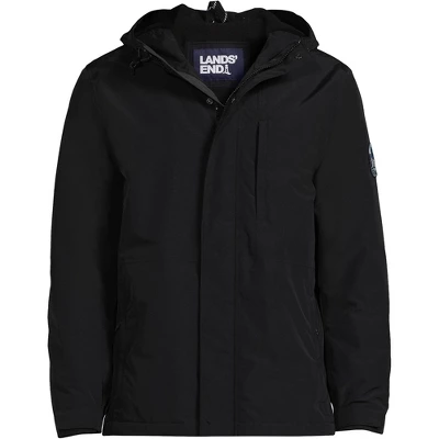 Get prepared for wet windy and cold winter weather with this rough and tough member of the famous Lands’ End Squall family. We’ve made the shell on this incredible hooded coat windproof and waterproof so you won’t bat an eye when you look at the forecast and see nothing but storms heading your direction.The simple classic design of this man’s coat looks great season after season which is a good thing since you’ll be wearing it for a while. Layer it with your favorite sweaters and flannel shirts to trap body heat or toss it on over a long-sleeve tee when things finally start warming up. If you need a little air just unzip it and enjoy the breeze.This coat also features several roomy pockets for all of your essentials and it’s incredibly packable too. Put it in your suitcase or backpack and take it on your next ski trip to Canada or a weekend camping adventure and you’ll be prepared for anything Mother Nature has in store. The sealed seams offer the ultimate in protection so rain sleet and snow will stay outside where they belong.