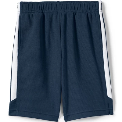 Get him ready to run jump and play hard with these School Uniform Boys Mesh Athletic Gym Shorts from Lands’ End! Thanks to a winning combination of quality materials and timeless design they’re perfect for all of his adventures. We’ve added moisture-wicking finishes to keep him fresh and dry all day long. The breathable mesh fabric also allows air to circulate freely so he’ll stay cool and comfortable even when it’s warm outside. Best of all these stretchy gym shorts look good with practically everything in his closet. Just add a cotton t-shirt or a tank top and a pair of sandals in the summer and he’ll be ready for a day at the lake. When the weather cools down pair them with sneakers and a cozy hoodie and send him off to play with friends. Since they’re made from 100% polyester these little boys gym shorts are also incredibly easy to care for. Simply toss them in the washing machine and they’ll be clean and ready to wear again before you know it.