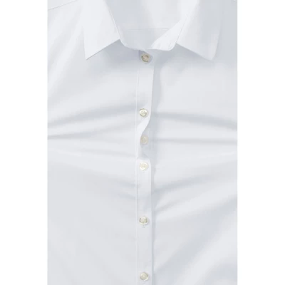 This shirt doesn’t just keep her looking neat and well-dressed through the day, it also keeps her completely covered and confident thanks to innovative No Gape® hidden-button feature that prevents gaping at the bust. The stretch fabric provides comfort that moves with her, and an easy-care finish keeps this shirt crisp after every wash. An ideal dress shirt for school days and special occasions.