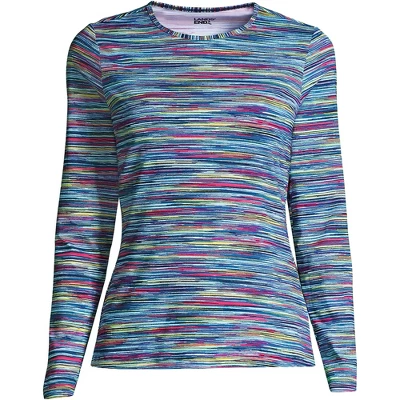 At Lands’ End we believe every body is a swimsuit body and everybody should feel confident in their swimwear. Our Women’ Crew Neck Long Sleeve Rash Guard Modest Swim Tee is no exception. Lightweight and soft this tee is made with LYCRA Xtra Life spandex. It is specially designed to keep its shape in and out of the water and hold up all summer long. It offers UPF sun protection wherever it has you covered. We promise you’re going to love this fun and flattering crewneck long sleeve modest swim tee.