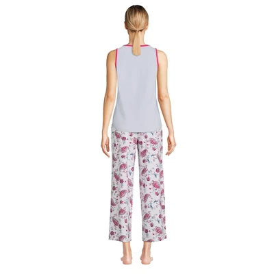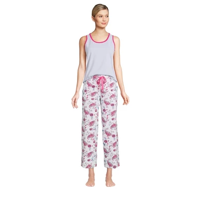 Nothing beats this soft jersey knit in the cutest combos for catching some zzzz’s. The easy-fitting tank top has a modest scoop neck with a pretty scalloped detail. And the super-soft crops come in fun prints to complete the set.