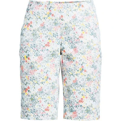 Our Lands’ End Women’s Plus Size Mid Rise Elastic Waist Pull On 12” Chino Bermuda Shorts are the perfect example of stylish comfort. Cute comfortable stretchy and stylish you can wear these shorts from morning until night and never suffer an ounce of discomfort. Made from a quality cotton-blend with just a hint of stretch and a covered elastic waistband these pants offer that stretchy mobility you need to fit just right so they feel and look amazing. The breathable nature of cotton also keeps you cool and comfortable when you work or play indoors or outside. But the best part? They present like a dressy pair of shorts thanks to the Front hip pockets back welt pockets and neatly stitched faux zip fly. But don’t worry they are still comfy enough to lounge in. Exactly what you want in a great pair of shorts right? Wear them with tunic tops dress blouse blazers suit jackets cardigan sweaters sleeveless shirts or a basic cotton tshirt or button-down shirt for a run to the store or a fun day around town. Add some sandals heels or slip-on boat shoes and you’ll have a complete stylish outfit in minutes. Women’s Plus Size Mid Rise Elastic Waist Pull On 12 Inch Chino Bermuda Shorts are available in a variety of colors and prints. Plus sizes start at size 16 plus petite plus size 16 and 18 available. Lands’ End adjusts measurement and proportions on plus size items to ensure the best fit possible. Consult the sizing chart for your true size fit.
