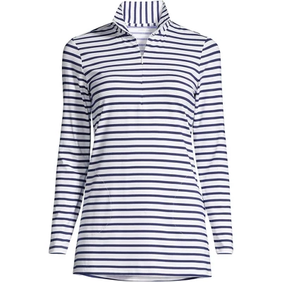 Every body is a beach body. But at Lands’ End we know there are still times when you need to cover up! Whether you want shade from the midday sun or just like to slip something on when you feel chilly this Women’s Quarter Zip Long Sleeve Tunic Rash Guard Cover-up will do the job. Made from stretchy Lycra it moves with you – never against you – and has a quarter zip that makes it easy to take on and off. The handy side pockets offer a place to keep your sunglasses lip balm and other must-haves. It also wicks away moisture making it great for hot humid days when you can easily work up a sweat. Perfect for travel this womens swimsuit cover-up is great over a bikini tankini or tank suit. It will keep your upper half protected from the sun and it even provides UPF protection that doesn’t wash away or pollute the ocean. Take it along on your next adventure and you’ll always have the right thing to wear whether you’re relaxing on the deck of a boat or by an outdoor pool. Take on summer’s best in comfort that’s sure to last.