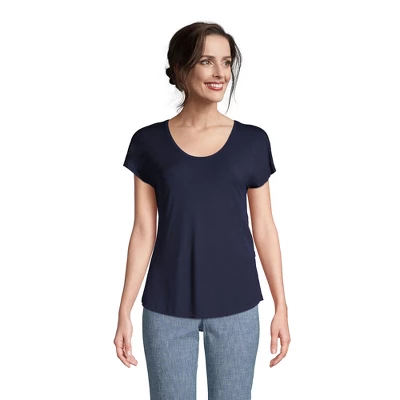There’s nothing like a good t-shirt. Comfortable and casual it’s what you’ll reach for again and again since it’s so versatile practical and flattering. We’ve made this one with a soft and stretchy blend of rayon and spandex that lets your body move and breathe with ease. The classic scoop neck draws attention to your face and the dolman sleeve cut flatters your arms. On a warm summer or early fall day try it with skinny jeans and a pair of simple canvas sneakers. Add a straw tote and sunglasses for a fun fresh look that’s laidback but still stylish. Since it’s a little on the long side you can also wear this tee with leggings and yoga pants making it great for anyone with an active lifestyle. We love bringing a few of these tees with us on vacation. Since they’re so light they don’t take up much room in your suitcase but they can be worn almost anywhere. Get one in black and wear it with a skirt and heels when you go for dinner. During the day try it in bright verbena pink with a pair of shorts when you’re exploring a fun beach town with your partner. Wherever you go this is the tee to take along.