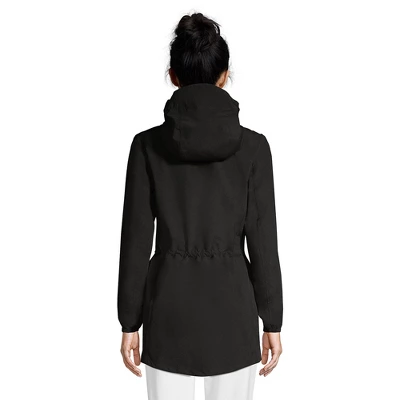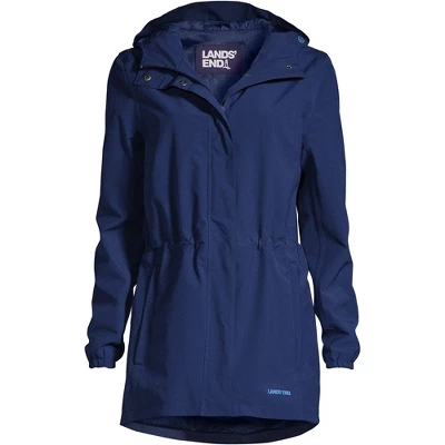 Gray clouds and an iffy weather forecast are nothing to fear when you have this Women’s Plus Size Waterproof Packable Raincoat from Lands’ End. We know the ins and outs of a fickle climate so we’ve made these gorgeous womans jackets light comfortable and extra tough. And if it doesn’t end up pouring you’ll still look cute thanks to its sporty windbreaker-inspired design.A draw cord in the waist lets you cinch it for a fitted look that’s never loose or baggy and you can also pull the hood tight around your face when the wind picks up and it’s coming down hard. The elastic cuffs hug your wrists to keep water from getting inside and there’s also a storm flap over the zipper.We offer this amazing jacket in black soft iris purple peacock teal limelight and royal cobalt so finding a color that looks gorgeous with your complexion is a snap. Try it in a dark and dramatic shade or go for something bold and fun to brighten up dreary days. There’s a locker loop inside the neck so you can hang it up to dry once you finally make it back inside.