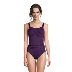 Lands’ End Women’s Long Slender Tummy Control Chlorine Resistant V-neck Wrap One Piece Swimsuit