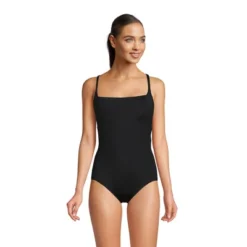Lands’ End Women’s Chlorine Resistant Smocked Square Neck One Piece Swimsuit With Adjustable Straps