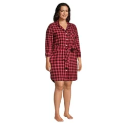 Lands’ End Women’s Plus Size 3/4 Sleeve Flannel Sleepshirt Nightgown
