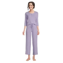 Lands’ End Women’s Pointelle Rib 2 Piece Pajama Set – 3/4 Sleeve Top And Crop Pants