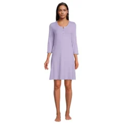 Lands’ End Women’s Pointelle Rib 3/4 Sleeve Knee Length Nightgown