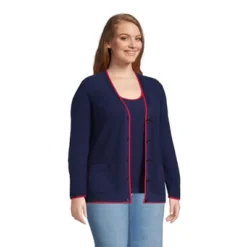 Lands’ End Women’s Fine Gauge Cotton Button Front Blazer Sweater