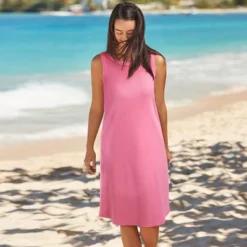 Lands’ End Women’s Cotton Poplin 3/4 Sleeve Split Neck Dress